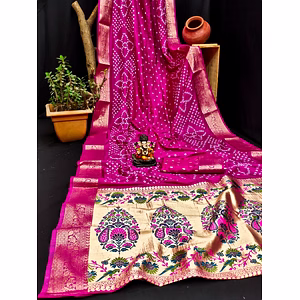 Introducing our latest collection: The Pure Kanjivaram Pattu Full Zari Silk Saree. This exquisite masterpiece combines the timeless elegance of Kanjivaram silk with the opulence of pure Banarsi silk fabric, resulting in a saree that is truly extraordinary. Crafted with meticulous care and attention to detail, this saree features a super-rich grand Meena pallu that adds a touch of regal splendor. The contrasting shaded border further enhances its beauty, creating a striking visual impact that is sure to turn heads. Not only is this saree a feast for the eyes, but it also offers unparalleled comfort. The pure Banarsi silk fabric ensures a soft and smooth feel against your skin, allowing you to wear it with ease and grace throughout the day or evening. Whether you have a special occasion to attend or simply want to make a statement, this saree is the perfect choice. Its stunning design and intricate workmanship make it a true work of art, making you the center of attention wherever you go. The Pure Kanjivaram Pattu Full Zari Silk Saree is more than just a garment; it is a symbol of grace, tradition, and beauty. With its unique blend of Kanjivaram silk and Banarsi fabric, it brings together the best of both worlds, offering you a truly exceptional piece of Indian couture. Embrace the allure of this saree and experience the unmatched luxury it brings. Elevate your style and make a lasting impression with this extraordinary creation. Discover the magic of the Pure Kanjivaram Pattu Full Zari Silk Saree and indulge in the finest craftsmanship that is sure to leave you spellbound.