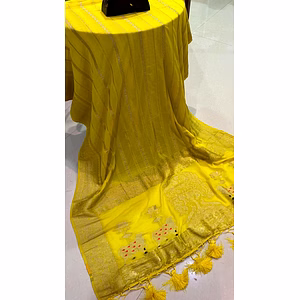 Introducing the Pure Soft Khadi Georgette Silk Saree, a mesmerizing blend of elegance and luxury. Crafted with utmost care, this saree is designed to make you feel like a queen. Featuring a rich Zari woven pallu and fancy tassels, this saree exudes opulence and sophistication. The heavy woven border adds a touch of grandeur, making it perfect for special occasions and festivities. What sets this saree apart is its exquisite all-over Zari weaving, creating a breathtaking pattern that catches the light and dazzles with every movement. The intricate design showcases the skill and artistry of our master weavers, ensuring that you stand out from the crowd and make a lasting impression. Made from pure soft Khadi Georgette silk, this saree offers a luxurious drape and a silky smooth feel against your skin. The lightweight fabric ensures comfort without compromising on style, allowing you to effortlessly carry yourself with grace and poise. To complete your ensemble, we have included a running barcode blouse that perfectly complements the saree. Experience the allure of traditional craftsmanship combined with contemporary elegance. With the Pure Soft Khadi Georgette Silk Saree, you can make a statement that is both timeless and fashionable. Embrace the richness, embrace the beauty, and embrace the extraordinary.