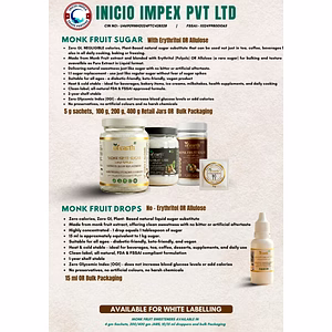 Elevate your culinary creations with our Monk Fruit Sweetener, a guilt-free alternative with zero glycemic impact. Whether in desserts, beverages, or large-scale food production, savor the pure sweetness without any lingering aftertaste.