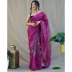 More than a garment, this organza silk saree is a timeless style investment. Cherish it as a treasured heirloom, transcending trends. Enjoy the confidence and legacy it brings, complete with a raw silk blouse for customization.
