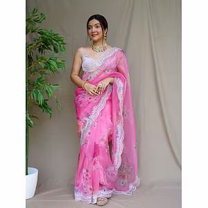 Introducing the Pure Organza Taby Silk Embroidered Digital Print Dress with Lace - a stunning addition to your wardrobe that effortlessly combines style, comfort, and elegance. This dress is expertly crafted from premium quality pure Organza Taby silk, ensuring both durability and comfort. One of the most striking features of this dress is the intricate digital print embroidery that adorns the entire length of the fabric. The bright and bold colors of the print are sure to catch the eye and make a statement, while the embroidered details add an extra layer of sophistication. The dress also features delicate lace embellishments along the neckline and hemline, adding a touch of femininity and grace. These details, combined with the lightweight and flowing fabric, create a dress that is both comfortable and glamorous. Perfect for any occasion, this dress is versatile and easy to style. It can be dressed up with statement jewelry and heels for a formal event, or dressed down with sandals and a denim jacket for a more casual look. Investing in the Pure Organza Taby Silk Embroidered Digital Print Dress with Lace means investing in a timeless and chic piece that will be a staple in your wardrobe for years to come. Don't miss out on the opportunity to elevate your style and make a statement with this stunning dress.