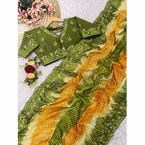 Introducing our exquisite and luxurious fabric - Pure Soft Khadi Georgette Silk. Crafted with utmost care and precision, this fabric is a true embodiment of elegance and style. The key features of this fabric are its pure softness and smooth texture, which make it a delight to wear. It drapes beautifully, giving you a graceful look that is sure to turn heads wherever you go. Made from the finest quality Khadi Georgette Silk, this fabric offers a myriad of benefits. It is lightweight and breathable, allowing your skin to breathe and stay comfortable even on the hottest of days. The silk adds a touch of sophistication, making it perfect for both casual and formal occasions. What sets this fabric apart is the weaving blouse with an exclusive border. The intricate weaving adds a unique touch to your outfit, making it a true statement piece. The exclusive border enhances the overall design and adds a touch of glamour. With its blend of timeless elegance and contemporary style, this fabric is the perfect choice for those who seek both comfort and fashion. It offers versatility, allowing you to create a variety of stunning outfits. Whether you want to make a bold fashion statement or exude an understated elegance, this fabric has got you covered. In conclusion, our Pure Soft Khadi Georgette Silk fabric with its exquisite weaving blouse and exclusive border is a must-have for anyone looking to add a touch of luxury to their wardrobe. With its key features, benefits, and unique selling points, this fabric is sure to make you feel confident and beautiful.