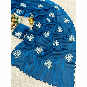 The Pure Silk Zimmy Choo Chiffon Saree with Stunning Sequence Work is a true masterpiece that effortlessly combines elegance and glamour. Made from pure silk chiffon, this saree drapes beautifully, creating a mesmerizing look that is sure to turn heads. Featuring intricate sequence work, this saree adds a touch of sparkle to your ensemble, making it perfect for special occasions and festive celebrations. The meticulous craftsmanship and attention to detail are evident in every stitch, ensuring a flawless finish that exudes luxury. The lightweight and breathable fabric of this saree ensures utmost comfort throughout the day or evening. It gracefully hugs your curves, flattering your silhouette and making you feel like a true diva. With its unique combination of traditional and contemporary elements, this saree effortlessly blends classic charm with modern sophistication. The vibrant colors and exquisite patterns make it a versatile choice for any occasion, whether it's a wedding, party, or cultural event. But the beauty of this saree doesn't end with its visual appeal. It also offers practicality and convenience. The high-quality silk fabric is easy to care for and remains lustrous even after multiple wears. It's a timeless investment that will continue to dazzle for years to come. Elevate your style and make a statement with the Pure Silk Zimmy Choo Chiffon Saree with Stunning Sequence Work. It's a true testament to the rich heritage of Indian fashion, showcasing the finest craftsmanship and impeccable design. Step into any room with confidence and grace, knowing that you're wearing a saree that is as unique and exceptional as you are.