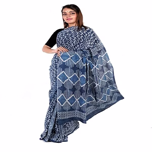Saree Fabric: Pure soft Chanderi cotton saree with spray-style dyeing above that hand-block prints. Artistic things to wear. Cotton tassels on pallu.