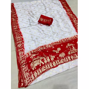 Introducing the Pure Soft Russian Silk Saree, a masterpiece of elegance and luxury. Crafted with meticulous attention to detail, this saree is a true testament to the beauty of tradition blended seamlessly with modern design. Made from the finest Russian silk, this saree exudes an unmatched softness and grace. The exquisite zari weaving adds a touch of opulence, making this saree a statement piece for any occasion. Each thread is intricately woven to create intricate patterns that shimmer with every movement, capturing the essence of timeless beauty. Designed with the modern woman in mind, this saree effortlessly combines tradition with contemporary style. The unique color palette and bold motifs make it a captivating choice for those who want to make a statement. Whether you're attending a wedding, a formal event, or a casual gathering, this saree will ensure that all eyes are on you. Not only is this saree a visual delight, but it also offers unparalleled comfort. The pure soft Russian silk feels heavenly against the skin, allowing you to move with ease and grace. This saree is the epitome of luxury, offering a truly indulgent experience. Invest in the Pure Soft Russian Silk Saree and elevate your wardrobe to new heights. Its exquisite zari weaving, modern design, and unparalleled comfort make it a must-have for every fashion-forward woman. Embrace the beauty of tradition with a contemporary twist and let this saree become your signature piece.