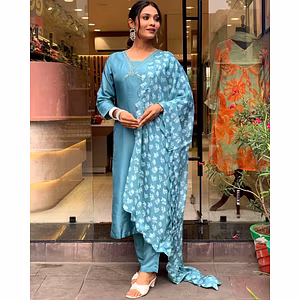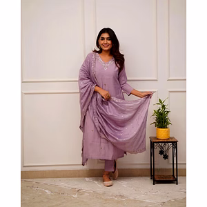 Introducing the Pure Viscose Chanderi Embroidered Kurta Set with Silk Dupatta, a stunning ensemble that combines elegance, craftsmanship, and comfort. Crafted with care, this kurta set is made from pure viscose chanderi fabric, known for its softness and luxurious feel. The intricate embroidery adds a touch of sophistication, making it a perfect choice for any special occasion. The key features of this kurta set are its impeccable design and attention to detail. The embroidery work is done by skilled artisans, ensuring every stitch is flawless. The silk dupatta adds an extra layer of grace and complements the overall look beautifully. But it's not just about the aesthetics. This kurta set is designed for comfort too. The breathable fabric allows for easy movement, keeping you at ease throughout the day or evening. Whether you're attending a wedding, a festive celebration, or a formal gathering, this ensemble will make you feel confident and stylish. One of the unique selling points of this kurta set is its versatility. It can be paired with different bottoms, such as palazzos, skirts, or churidars, allowing you to create multiple looks with just one outfit. The timeless design ensures that you can wear it for years to come, making it a valuable addition to your wardrobe. Investing in this Pure Viscose Chanderi Embroidered Kurta Set with Silk Dupatta means investing in quality, style, and comfort. It is an embodiment of traditional artistry and modern elegance. Step into any occasion with grace and make a lasting impression with this exquisite ensemble.
