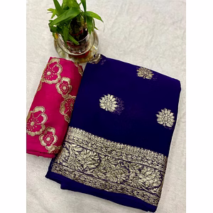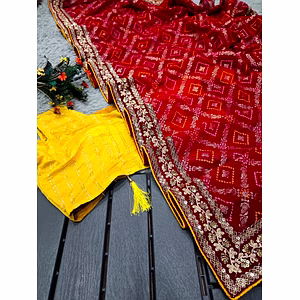 Introducing the Pure Viscose Georgette Saree - a stunning piece of art that is sure to turn heads and make you stand out from the crowd. This saree boasts a magnificent full saree bandhni print work, which is complemented by intricate and heavy embroidery work that runs throughout the entire saree. The result is a saree that is both elegant and unique, perfect for any special occasion. Crafted from high-quality pure viscose georgette, this saree is incredibly lightweight, comfortable, and easy to drape. The fabric is soft to the touch and drapes beautifully, making it a pleasure to wear all day long. The full heavy work all over the saree adds to its grandeur, making it a true work of art. But that's not all - this saree comes with a fancy blouse that perfectly complements the saree. The blouse features the same intricate embroidery work that runs throughout the saree, creating a cohesive and stylish look. The combination of the saree and blouse is sure to make you the center of attention at any event. Whether you're attending a wedding, a party, or any other special occasion, the Pure Viscose Georgette Saree is the perfect choice. It's a truly unique and stunning piece of clothing that is sure to make you feel confident, beautiful, and glamorous. Don't wait any longer - add this beautiful saree to your collection today!