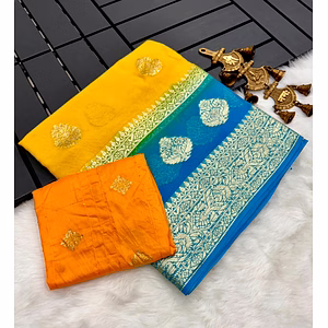 Introducing the Pure Viscose Georgette Weaving Jacquard Saree with same color blouse - the epitome of elegance and grace. This exquisite saree is crafted to perfection, combining the finest quality materials with meticulous attention to detail. Made from pure viscose georgette fabric, this saree offers a luxurious drape and a lightweight feel, ensuring utmost comfort throughout the day or evening. The weaving jacquard pattern adds a touch of sophistication, making this saree a true work of art. With its vibrant colors and intricate design, this saree is sure to turn heads wherever you go. Whether you're attending a wedding, a festive celebration, or a social gathering, this saree is the perfect choice to make a lasting impression. The Pure Viscose Georgette Weaving Jacquard Saree also comes with a matching color blouse, adding a seamless touch to your overall look. The blouse is expertly tailored to enhance your natural curves and provide a flattering fit. Designed for the modern woman who appreciates timeless elegance, this saree is versatile and can be styled in a variety of ways. Create a traditional look by draping it in the classic style, or experiment with different draping styles to showcase your individuality. Invest in this exquisite saree and experience the unmatched combination of style, comfort, and sophistication. With its unique blend of traditional craftsmanship and contemporary design, the Pure Viscose Georgette Weaving Jacquard Saree is a must-have addition to any discerning woman's wardrobe. Make a statement, exude confidence, and embrace your inner diva with this extraordinary saree. Stand out from the crowd and be the center of attention with this captivating and timeless piece.