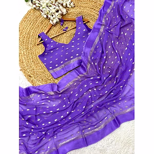 Introducing the Pure Viscose Georgette Weaving Jacquard Saree with same color blouse - the epitome of elegance and grace. This exquisite saree is crafted to perfection, combining the finest quality materials with meticulous attention to detail. Made from pure viscose georgette fabric, this saree offers a luxurious drape and a lightweight feel, ensuring utmost comfort throughout the day or evening. The weaving jacquard pattern adds a touch of sophistication, making this saree a true work of art. With its vibrant colors and intricate design, this saree is sure to turn heads wherever you go. Whether you're attending a wedding, a festive celebration, or a social gathering, this saree is the perfect choice to make a lasting impression. The Pure Viscose Georgette Weaving Jacquard Saree also comes with a matching color blouse, adding a seamless touch to your overall look. The blouse is expertly tailored to enhance your natural curves and provide a flattering fit. Designed for the modern woman who appreciates timeless elegance, this saree is versatile and can be styled in a variety of ways. Create a traditional look by draping it in the classic style, or experiment with different draping styles to showcase your individuality. Invest in this exquisite saree and experience the unmatched combination of style, comfort, and sophistication. With its unique blend of traditional craftsmanship and contemporary design, the Pure Viscose Georgette Weaving Jacquard Saree is a must-have addition to any discerning woman's wardrobe. Make a statement, exude confidence, and embrace your inner diva with this extraordinary saree. Stand out from the crowd and be the center of attention with this captivating and timeless piece.