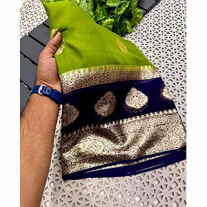 Introducing our Pure Viscose Georgette Weaving Jacquard Saree, a true masterpiece that combines elegance, tradition, and modernity. This saree is meticulously crafted to showcase the exquisite Bandhani and Lehariya print, making it a must-have for any fashion-forward woman. Made from pure viscose georgette, this saree offers a luxurious feel against the skin, ensuring both comfort and style. The intricate weaving and jacquard design add a touch of sophistication, making it perfect for any occasion, be it a wedding, festival, or a special evening out. With its vibrant colors and intricate patterns, this saree is a true reflection of India's rich cultural heritage. The Bandhani and Lehariya print, known for its unique tie-dye technique, creates a mesmerizing visual appeal that is sure to turn heads wherever you go. Each saree is handcrafted by skilled artisans, ensuring the highest quality and attention to detail. Not only does this saree look stunning, but it also offers versatility. Whether you drape it in the traditional style or experiment with different draping styles, this saree effortlessly enhances your natural beauty and adds a touch of glamour to your ensemble. In addition to its visual appeal, this saree is designed to be lightweight and easy to carry, allowing you to move with grace and confidence. The pure viscose georgette fabric drapes beautifully, ensuring a flattering fit for all body types. Invest in our Pure Viscose Georgette Weaving Jacquard Saree and make a statement wherever you go. With its timeless design, impeccable craftsmanship, and luxurious feel, this saree is not just a piece of clothing but a work of art. Embrace the essence of Indian culture and elevate your style with this exquisite saree.