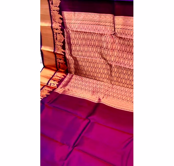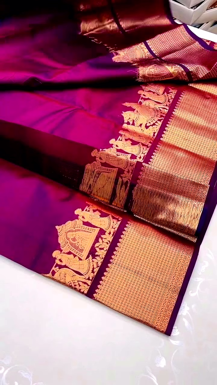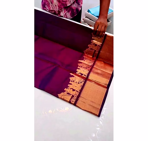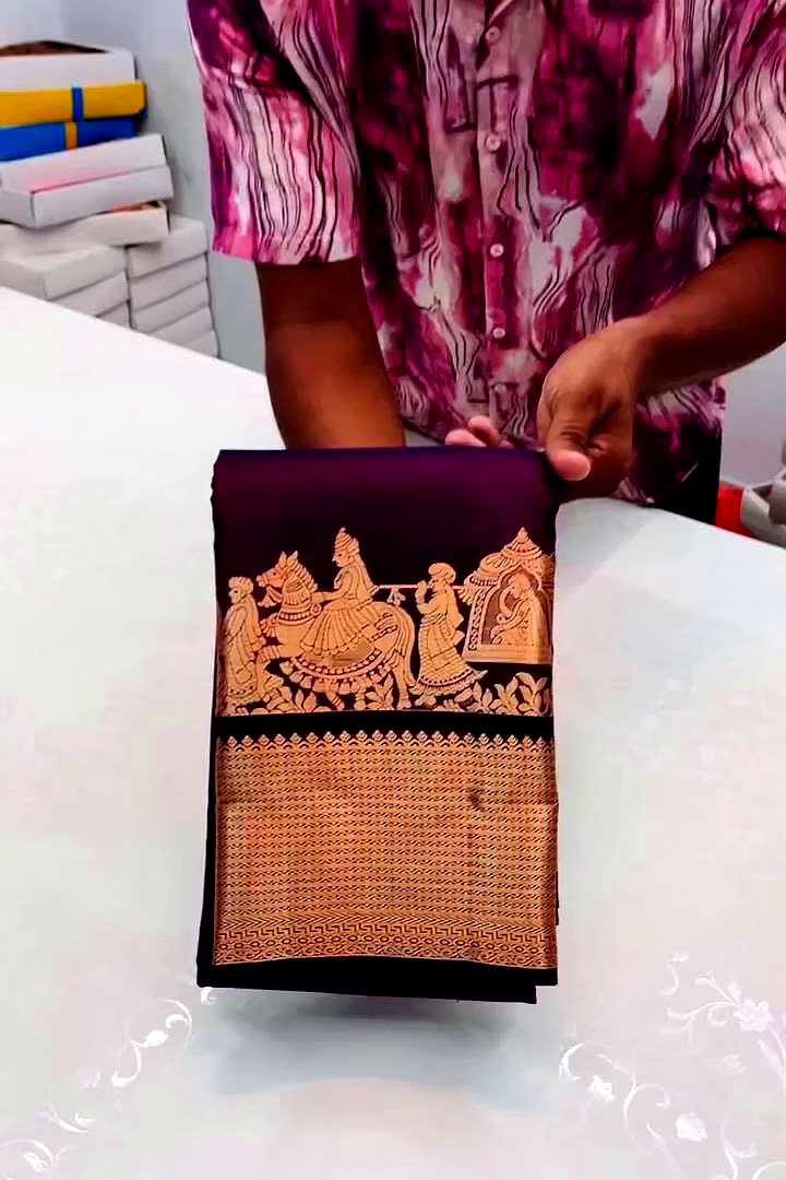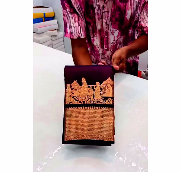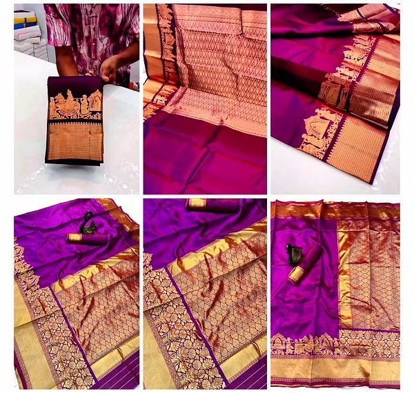 Design/Work: Detailed Jacquard weaving featuring traditional Kanjivaram and Banarasi inspired motifs.