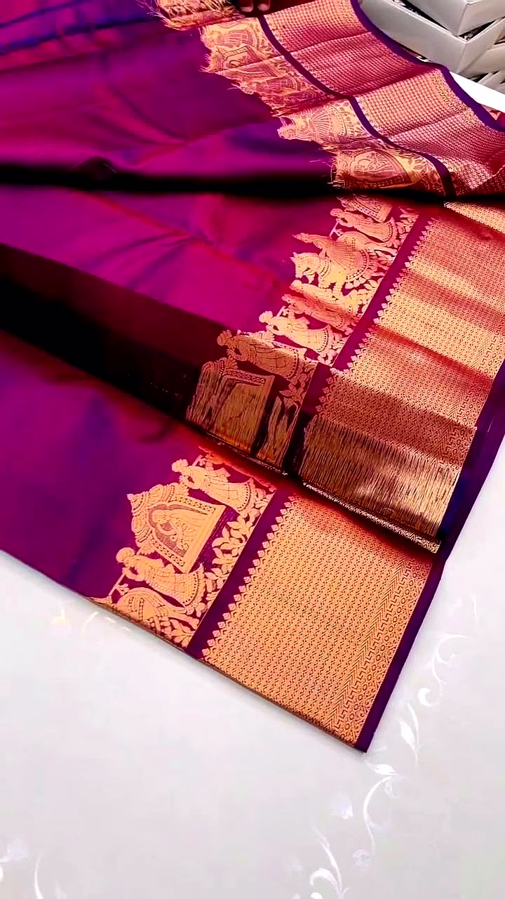 Exude regal charm with our Royal Purple Lichi Silk Saree. Designed with a luxurious sheen and a buttery-soft drape, this saree brings the grandeur of traditional weaving to a modern, lightweight fabric.