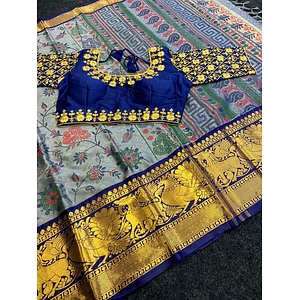 The Ready Made Hand Painted Blouse is meticulously crafted to celebrate traditional artistry while catering to modern tastes. Its intricate hand-painted designs are a testament to skilled craftsmanship.