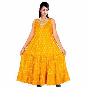 This Readymade Attire With Fabrics Buttons, Patchwork, Resham, Crafted In Round Neck and 3/4 Sleeves Material : Handloom Cotton Wash Care : Machine Wash Do note: Slight variation in actual color vs. image is possible