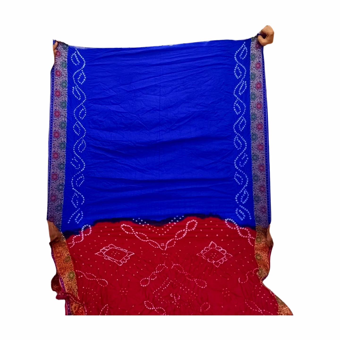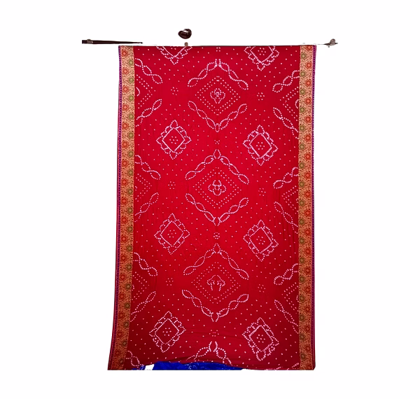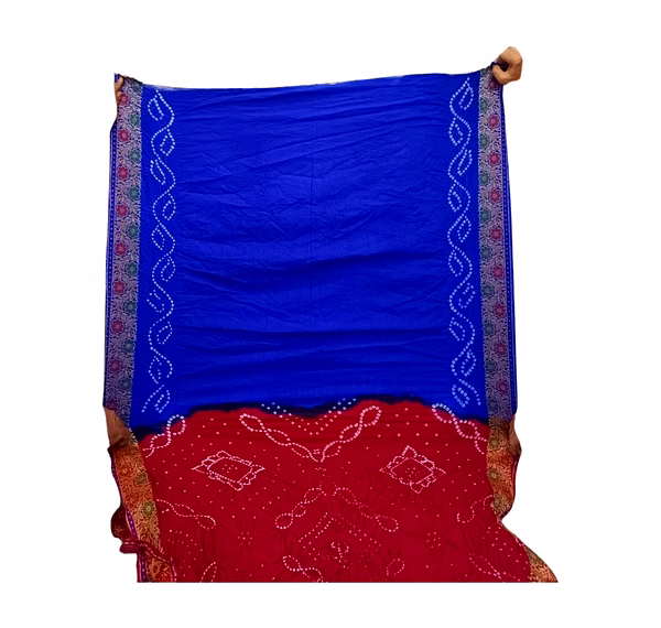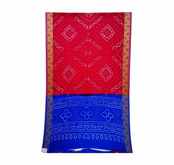 Red & Blue Color Dupion Silk Bandhani Saree