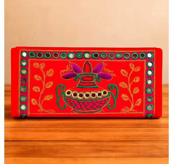 Red Color Clutch Purse with Mirror Work from JFS Global Trade is a handcrafted clutch bag in the clutch purses range, designed with cotton, dyed cotton. The beaded surface and detailing provide a distinct handmade look that fits ethnic, boho and occasion-wear collections in global markets. With careful work on the exterior and a soft inner base, this handmade beaded bag is suitable for carrying essential personal items. It is well suited for wholesalers, importers and private-label fashion brands seeking handmade beaded bags for bulk sourcing and export.