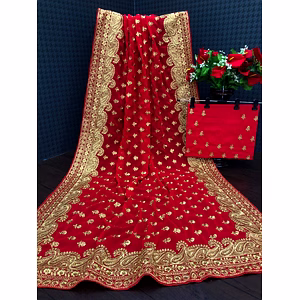 Make a statement in this Red Georgette Saree that effortlessly transitions from day to evening wear. Whether it's a formal event or a casual outing, this saree promises to make you stand out with its vibrant color and intricate details.