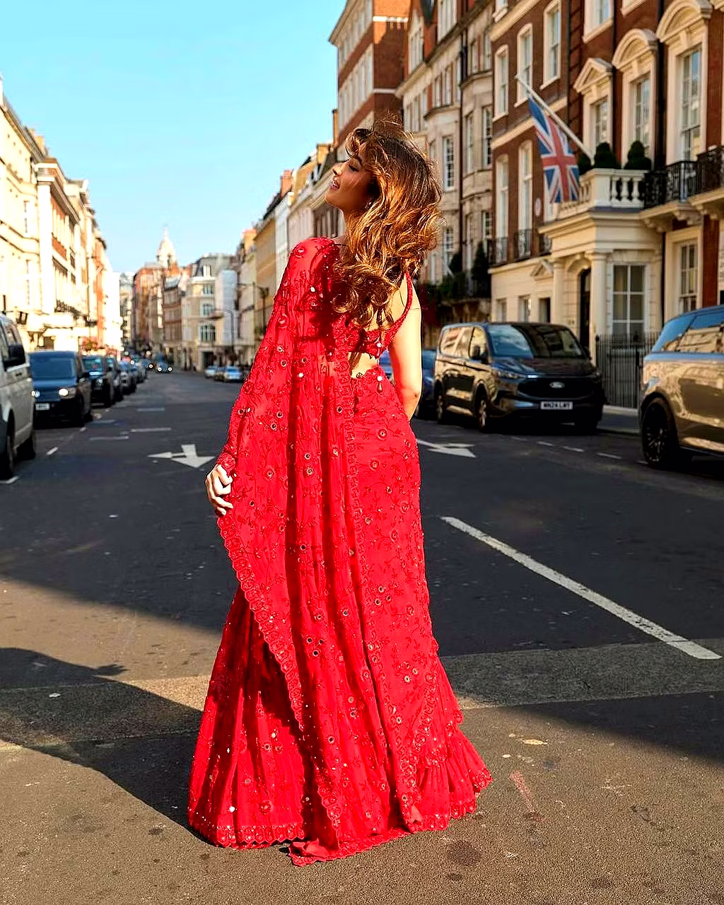 Radiate timeless elegance with this stunning red georgette saree with mirror work. Crafted for women who adore glamour and graceful drapes. Perfect for festive gatherings.