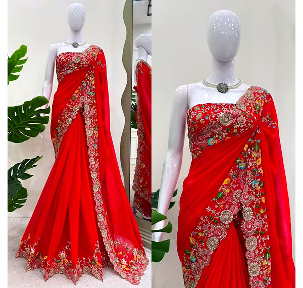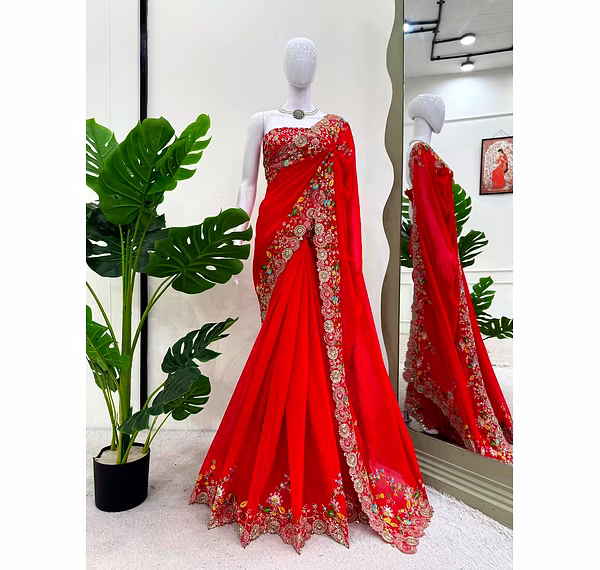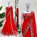 Whether you're attending a wedding, festival, or any celebratory event, the Red Georgette Saree with Thread and Sequins offers versatile styling options to make you stand out. Pair it with statement jewelry for a complete ethnic allure.