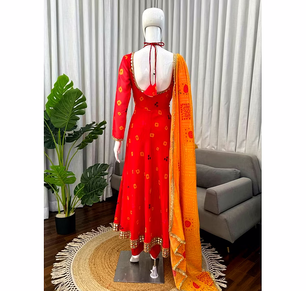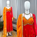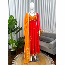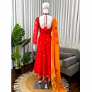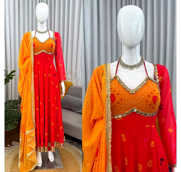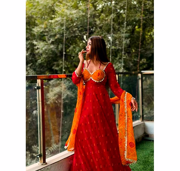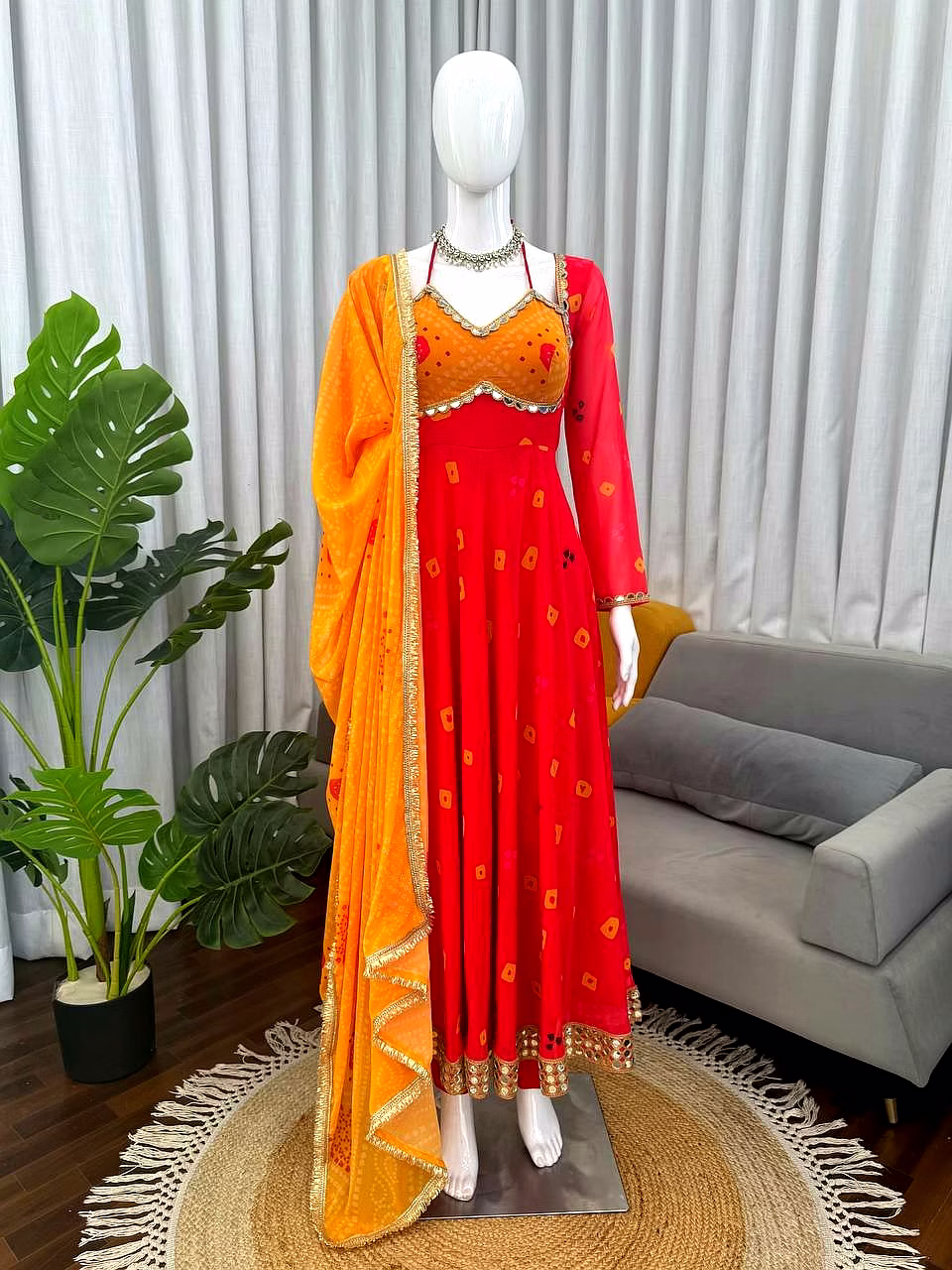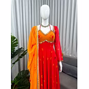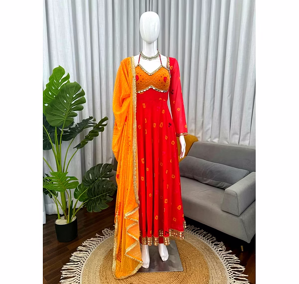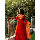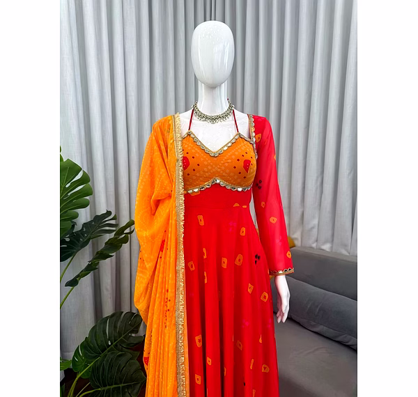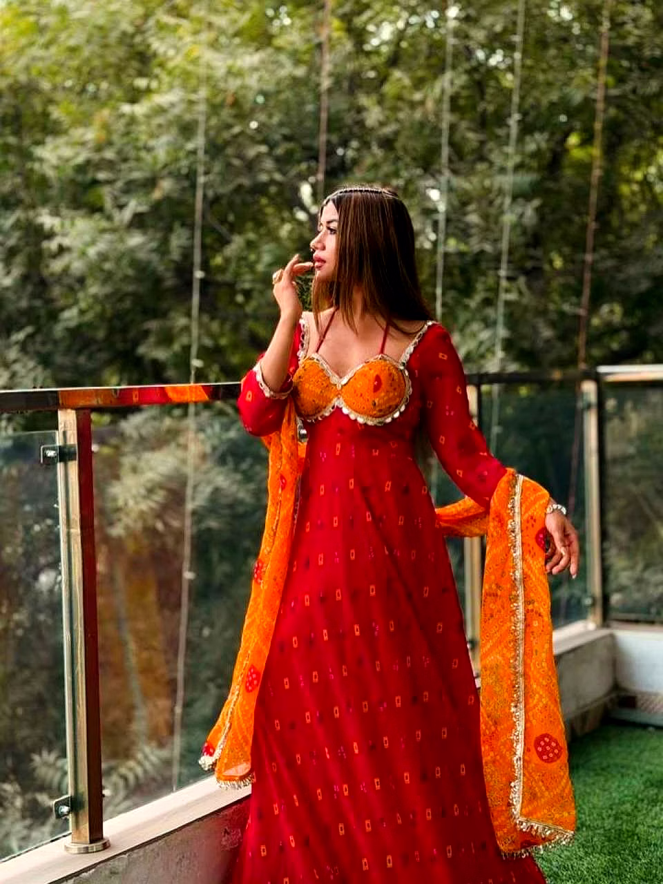 Step into the spotlight with our red georgette top that showcases exquisite mirror work. Each mirror intricately placed to catch the light and create a mesmerizing effect, making you the center of attention wherever you go.