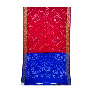 Red & Golden Color Dupion Silk Bandhani Saree