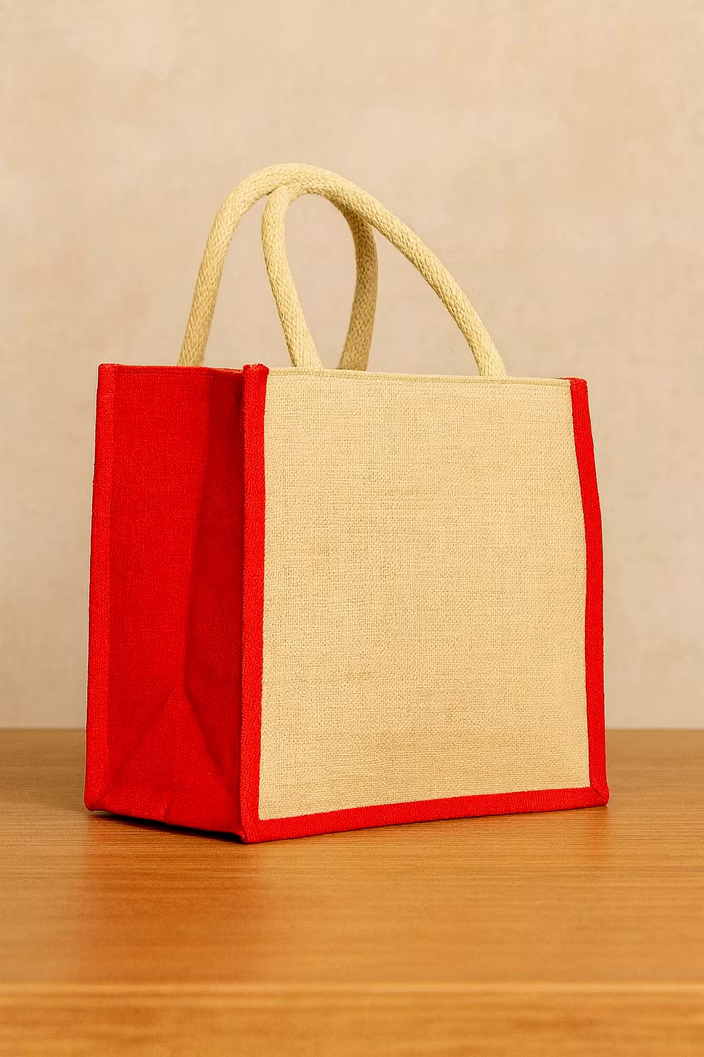 The bag is made from laminated jute, unlaminated jute, dyed cotton, mat cloth, with the combination selected to balance visual detailing and handling during regular use. Cotton components help keep the inner structure light and practical. The overall construction is intended to support consistent quality for repeat orders and long-term sourcing programmes.