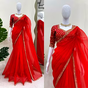 Symbolizing love and passion, this saree epitomizes the celebration of love, commitment, and tradition. Feel radiant and confident in this vibrant red ensemble that mirrors your inner beauty and unique style.