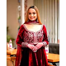 Indulge in the regal allure of the Red Velvet Designer Anarkali Gown. The deep red velvet hugs your curves with grace and the exquisite embroidery adds a touch of modern sophistication to classic couture.