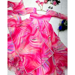 Embrace a statement piece that transcends fashion into a realm of luxury and confidence. This Anarkali gown is not just an outfit but a memory-maker, adding a touch of opulence to weddings, engagements, and festive occasions.