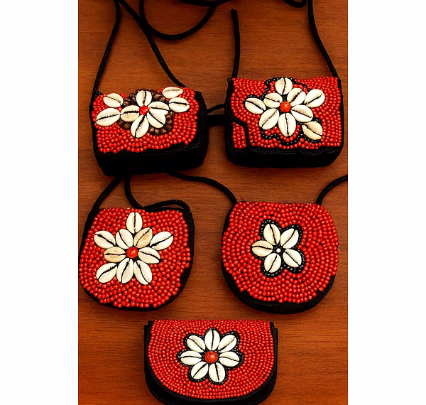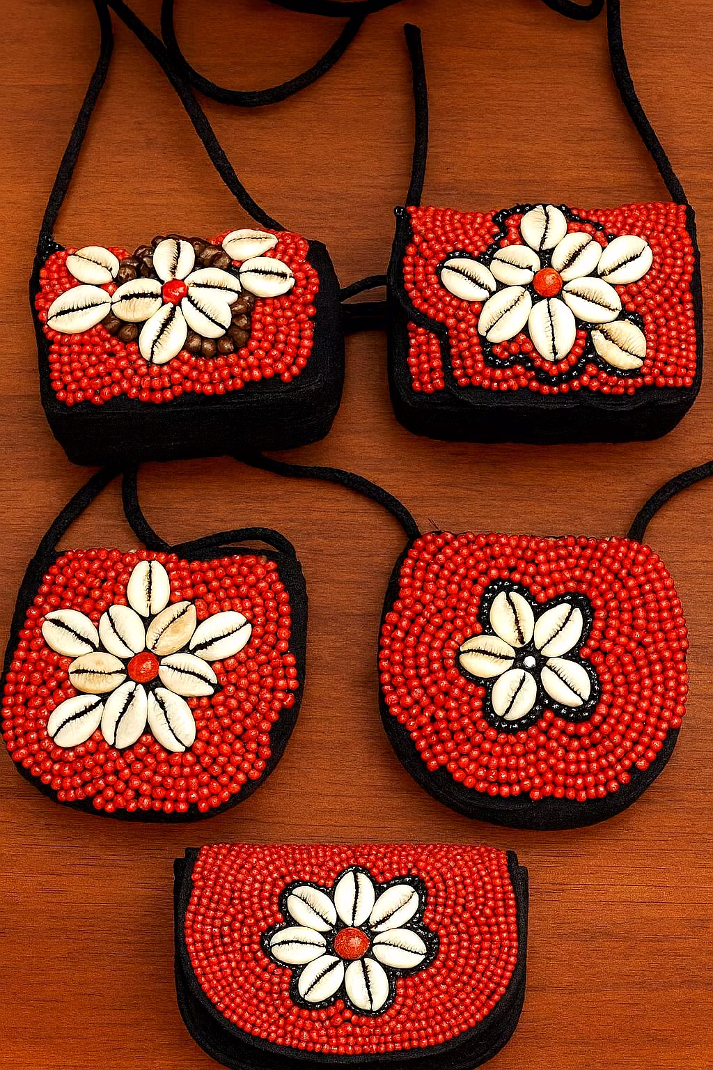 The design highlights red colour tones described in the product title, complemented by beads and any shells arranged in structured patterns. This wallet can be positioned as an accessory for ethnic wear, festive collections and evening events where buyers prefer handmade beaded bags over plain fabric options. It is suitable for importers, wholesalers, boutique owners and online sellers who require clear, repeatable designs that can be presented in lookbooks or catalogues.
