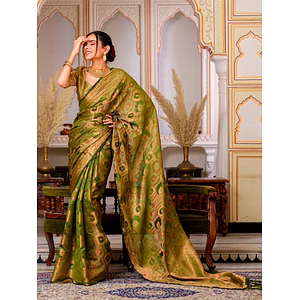 Introducing the Regal Charm saree, a masterpiece of elegance and style. Made from pure organza, this saree exudes timeless beauty and grace. With its enchanting tassels and intricate brocade work, it is a true testament to the craftsmanship of our artisans. The Regal Charm saree is designed to make you feel like royalty. Its lightweight and breathable fabric ensures comfort all day long, while the delicate tassels add a touch of whimsy to your ensemble. The intricate brocade detailing adds a regal touch, making this saree perfect for special occasions or festivities. Not only does the Regal Charm saree look stunning, but it also offers incredible versatility. The classic design and neutral colors make it easy to pair with different blouses and accessories, giving you endless styling options. From traditional events to modern celebrations, this saree is sure to turn heads and make you the center of attention. But the beauty of the Regal Charm saree goes beyond its appearance. It is crafted with the utmost care and attention to detail, ensuring its longevity and durability. Each thread is carefully woven to create a seamless and flawless piece that will stand the test of time. When you choose the Regal Charm saree, you are not just purchasing a piece of clothing; you are investing in a work of art. It is a reflection of your impeccable taste and style. Whether you are attending a wedding, a party, or simply want to make a statement, this saree will elevate your look and leave a lasting impression. Experience the allure of the Regal Charm saree and let its beauty captivate you. Get ready to embrace elegance, sophistication, and grace. Indulge in the luxury of this saree and make a statement wherever you go.