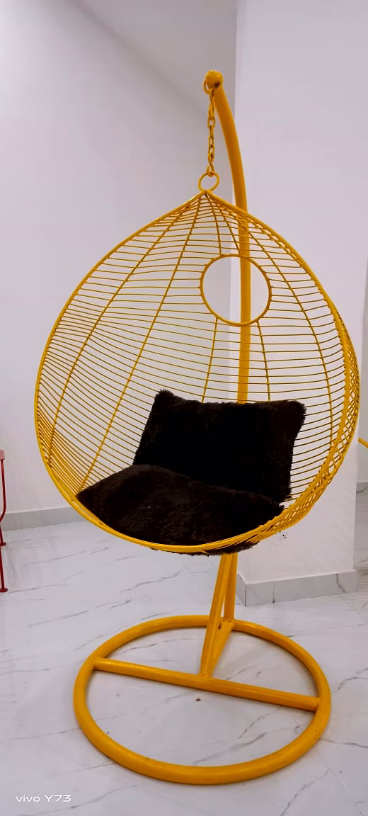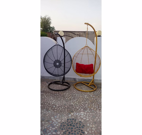Crafted from sturdy iron and expertly powder coated, this swing is built to withstand the elements, ensuring longevity and durability. Its round design adds a touch of elegance to your garden or patio, creating a charming focal point for your outdoor space.