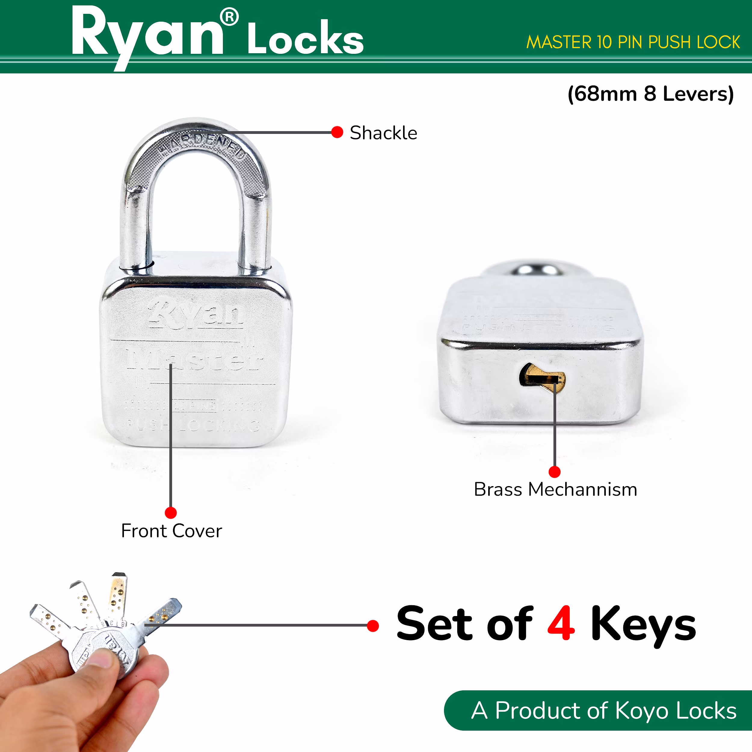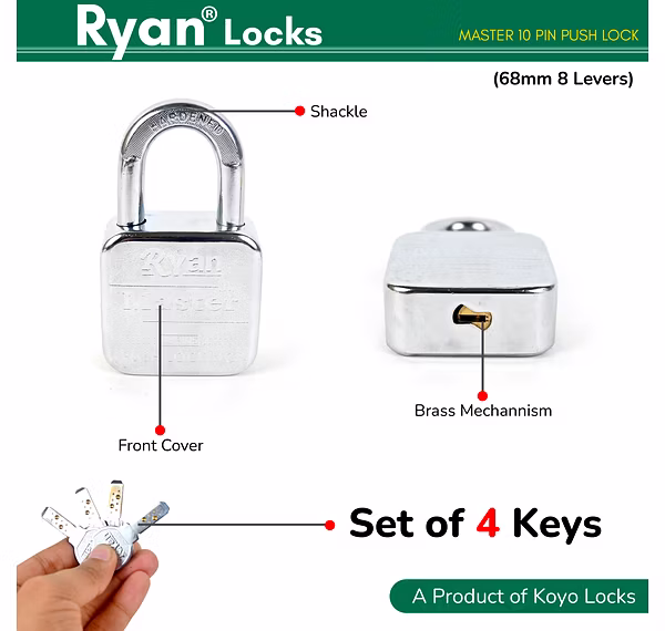 Included with the Ryan Master Padlock are 4 ultra brass keys, crafted for precision and ease of use. These keys ensure smooth operation and provide multiple spares for added convenience. Whether for personal use or shared access, these keys are designed to fit seamlessly into your lifestyle, making security simple and reliable.
