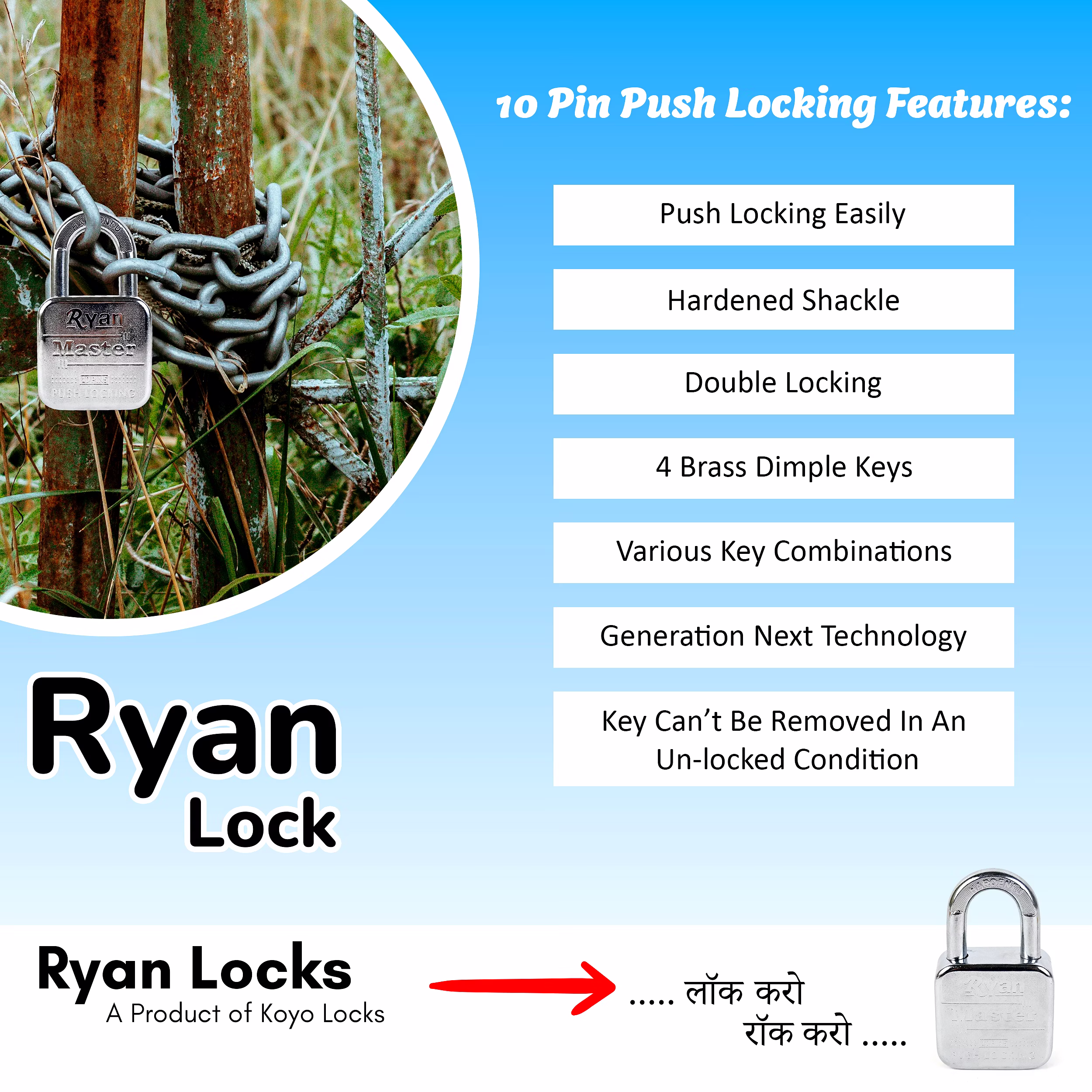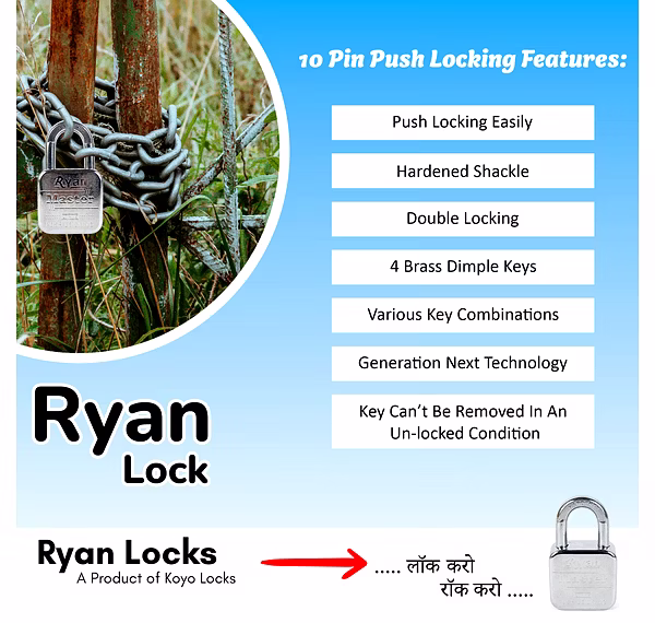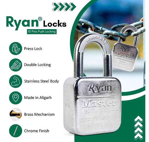 For those who demand top-tier security, the Ryan Master Padlock features a 14 pin double locking system. This advanced mechanism provides superior protection against picking and tampering, making it one of the most secure padlocks on the market. The hardened shackle is designed to resist cutting and sawing, offering unmatched security for your valuables.