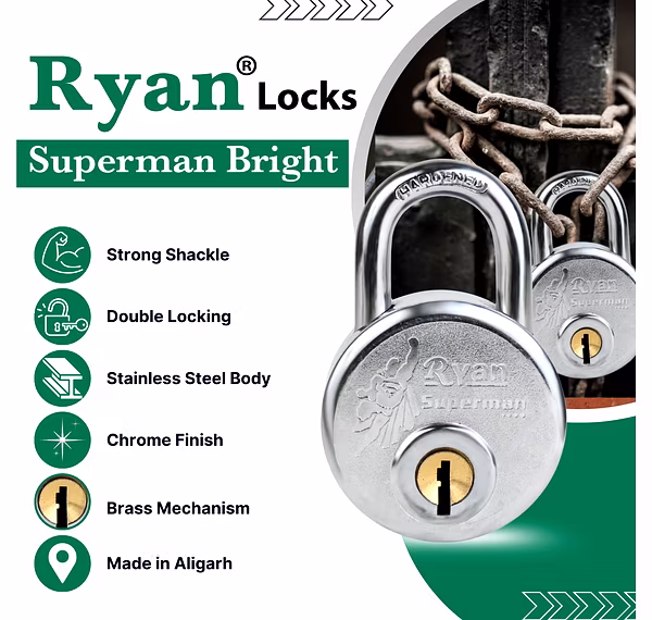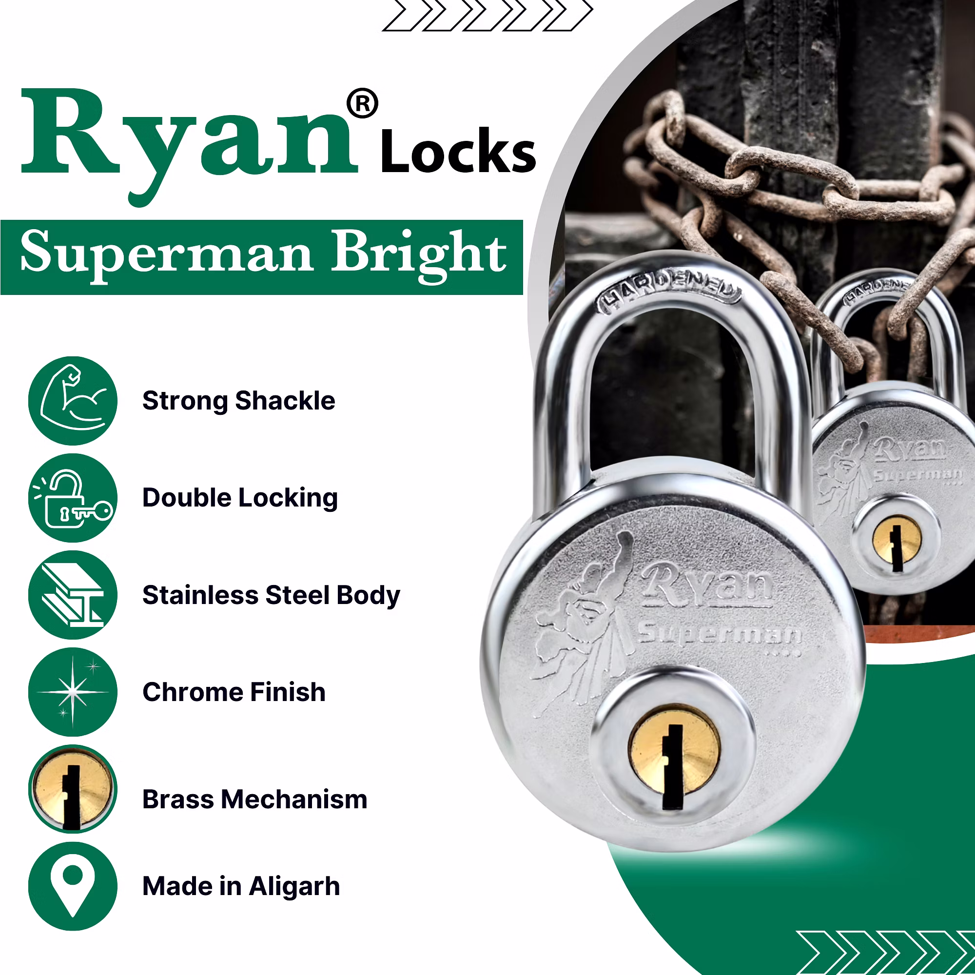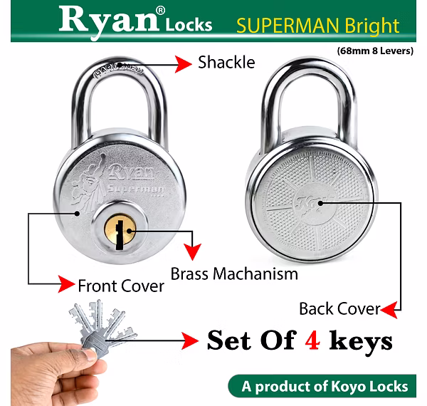 Secure your property with the Ryan Superman 68mm Steel Padlock. Featuring a double locking mechanism and 3 regular keys, this durable padlock provides maximum protection for your valuables.