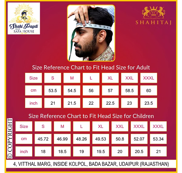 Art and craft has been an integral part of Indian ethos since ages. It is this ancient tradition and heritage that we at Shahi Taj strive to keep alive. A pioneer in Indian traditional head accessory industry, we not only cater the Indian domestic market but is also leading exporter of turban, safa, pheta and pagdi. We have years of experience in manufacturing traditional ethnic turbans which are perfect for all occasions. Designing as per your outfit. This product is beautifully crafted using superior quality thread.