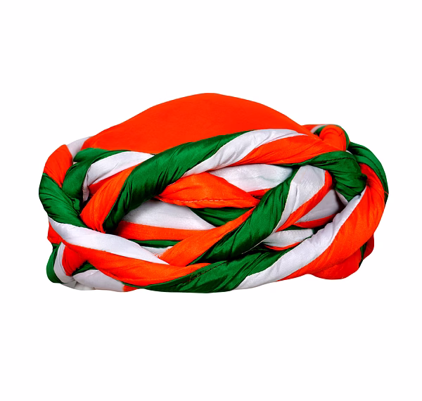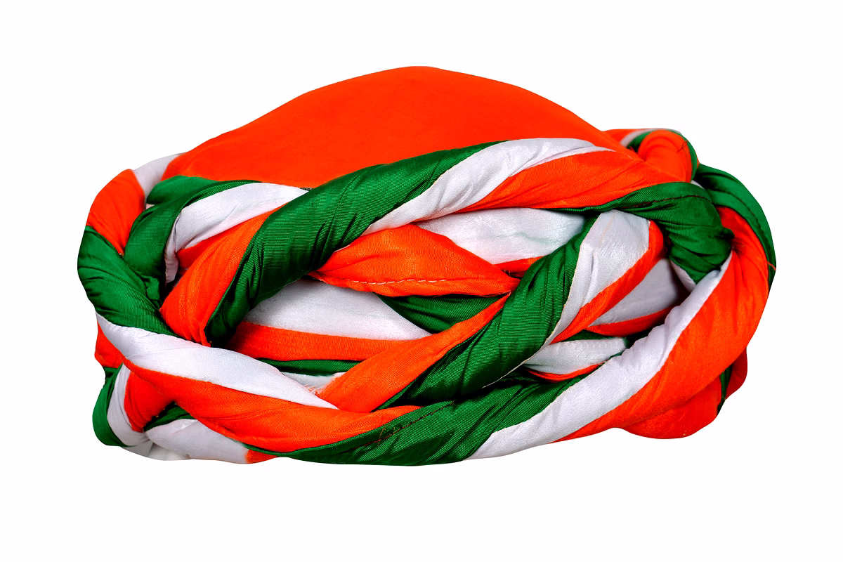S H A H I T A J Traditional Rajasthani Faux Silk Tricolor or Tiranga Barmeri or Vantma Pagdi Safa or Turban Multi-Colored for Kids and Adults (RT138)