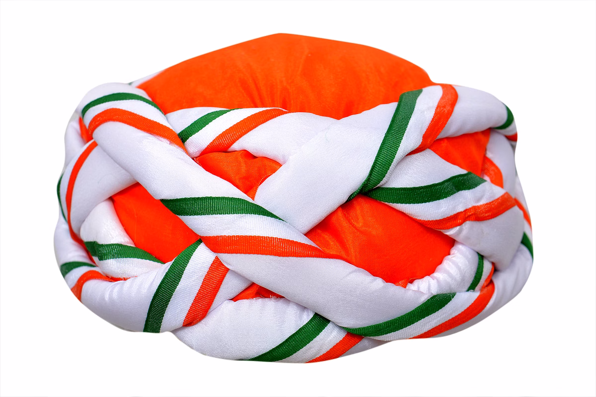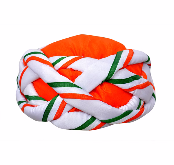 S H A H I T A J Traditional Rajasthani Faux Silk Tricolor or Tiranga Vantma Pagdi Safa or Turban Multi-Colored for Kids and Adults (RT136)