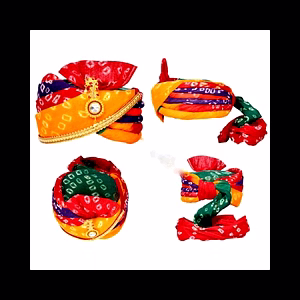 S H A H I T A J Traditional Rajasthani Wedding Barati Zari Cotton Kotadoriya Kesariya Jodhpuri & Rajputi Pagdi Safa or Turban with Brooch for Kids and Adults (CT192)