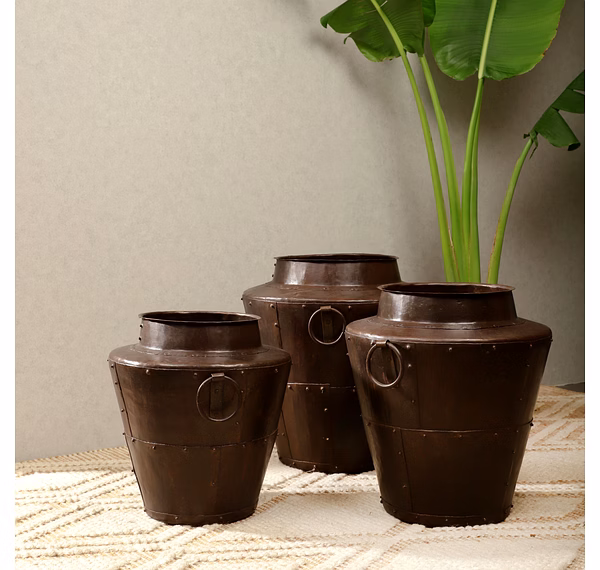 Constructed from high-quality iron, the Sahara Pot Medium Set of 3 ensures durability and longevity. Its sleek design and sturdy build make it a perfect choice for adding a touch of elegance to your home or garden decor. Elevate your space with these exquisite planters today.