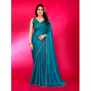 Experience luxury with this green georgette saree featuring fine silk line detailing that adds sophistication to your ensemble. The satin silk inner layer ensures a comfortable drape and elegant finish.