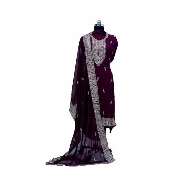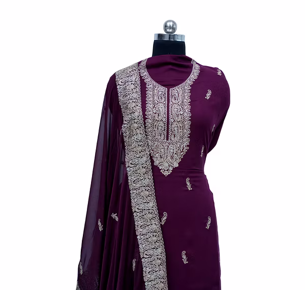 * SET OF 3 PCS ,Unstitched Embroidered Salwar Suit Fabric With Dupatta