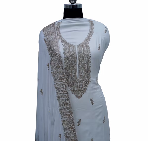 *The unstitched salwar suit is elevated with threadwork embroidery