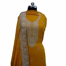 * Be the sunshine of everyone’s eyes dressed in this color rayon unstitched palazzo suit with chiffon dupatta. The wonderful dress creates a dramatic canvas with astounding embroidered work. Comes with matching bottom and dupatta. (Slight variation in color, fabric & work is possible.)