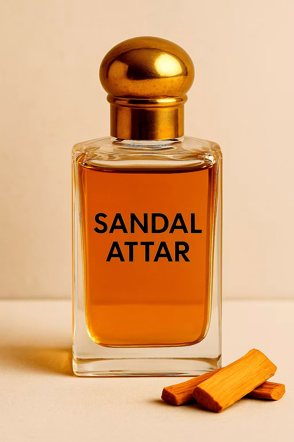 Sandal Attar is a traditional fragrance oil distilled from sandalwood. It offers a warm, woody aroma that relaxes the mind and enhances spiritual focus and personal fragrance.