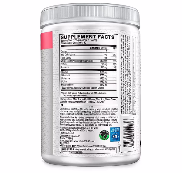 ?Xtend is the best-selling, most advanced BCAA drink mix on the planet. At its heart are 7g of BCAAs in the nature-designed and research-proven 2: 1: 1 ratio, plus Glutamine and Citrulline Malate. With a proprietary blend of hydration-inducing electrolytes, Xtend BCAA Powder is a sugar-free and carb-free way to help anyone grind through a grueling gym session. World-class athletes, Champion fighters, Elite bodybuilders, and weight training enthusiasts of varying types all use Xtend during their workouts in order to train longer, harder, and with more intensity. ?designed for intra-workout consumption and shown effective in two university studies*, Xtend BCAA Powder is the most advanced product of its kind and helps to facilitate both fat loss and new muscle construction. By orchestrating optimal Protein Synthesis and by balancing the intracellular energy economy, Xtend seriously Shortens recovery time. You just don't feel recovered, you are recovered. with unparalleled mixability, delicious flavors, and an array of ingredients in scientifically-proven amounts, Xtend BCAA Powder continues to outpace the competition. Build muscle, burn fat, and prolong the intensity of ? and recovery from ? your next workout with Xtend!
