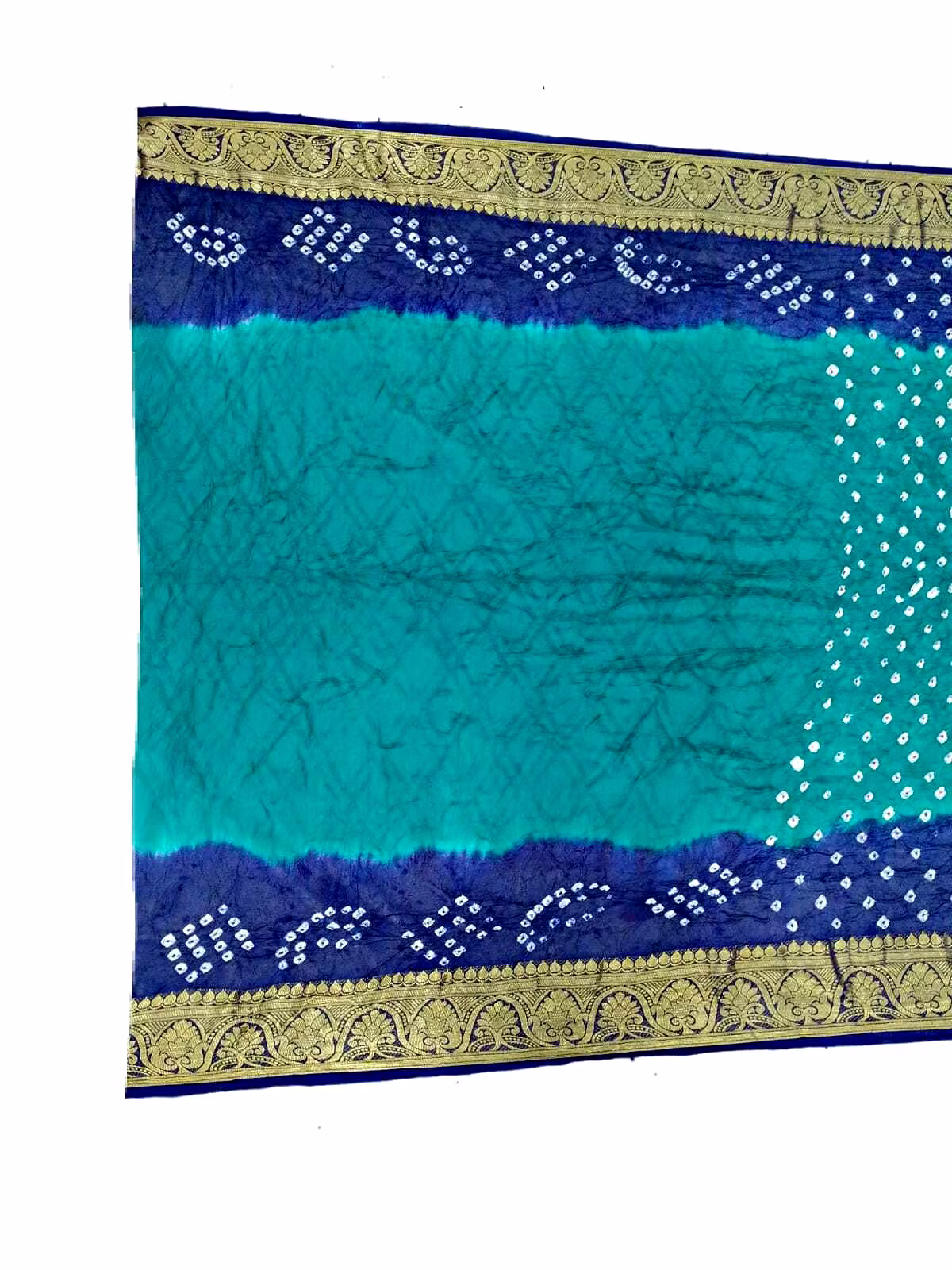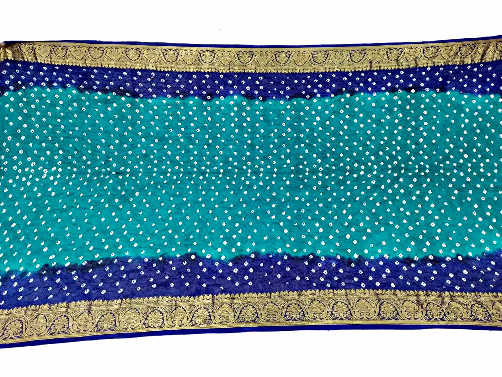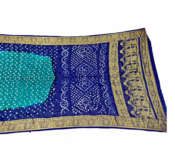 Sea Green & Blue Color Art Silk Bandhani Saree