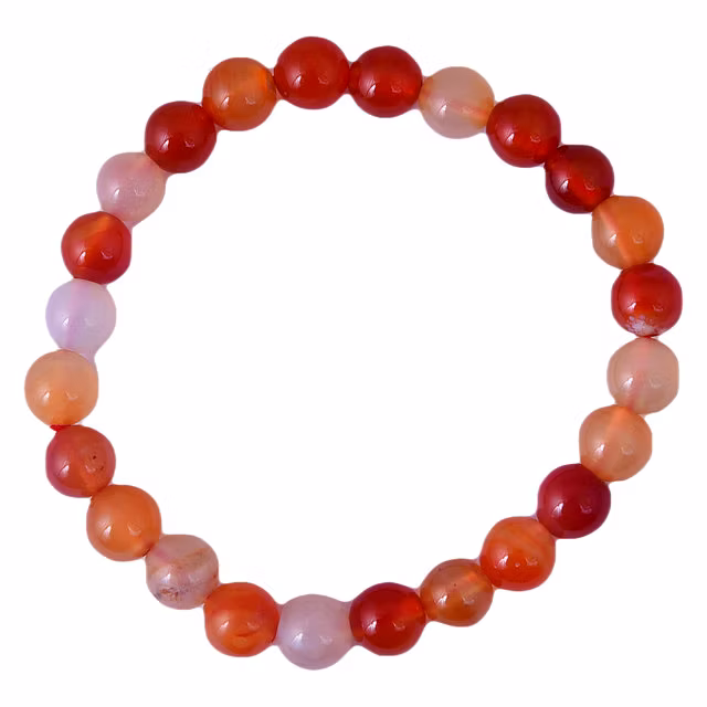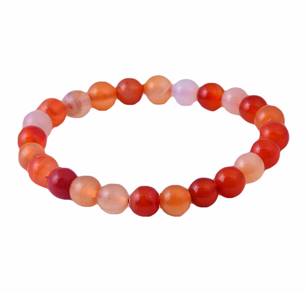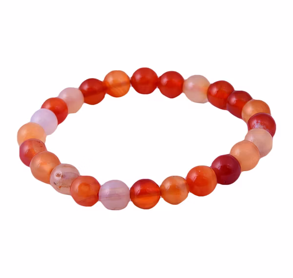 Ignite your inner fire with the Carnelian Bracelet (Model: KI_128) – a vibrant crystal known for enhancing confidence, creativity, motivation, and vitality. Revered as the stone of courage and action, Carnelian stimulates the Sacral Chakra, making it ideal for those seeking to overcome fear, boost self-esteem, and stay energized. Perfect for use in Vastu, meditation, and daily wear, this bracelet also brings a bold, stylish look to any outfit.