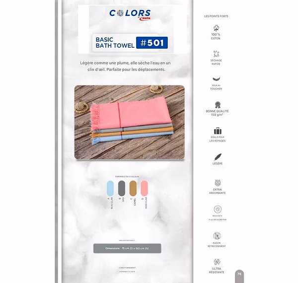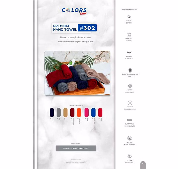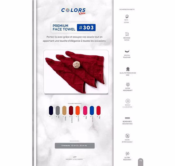 Serviette Bain Main Visage TOWEL Collection Colors RUPA :