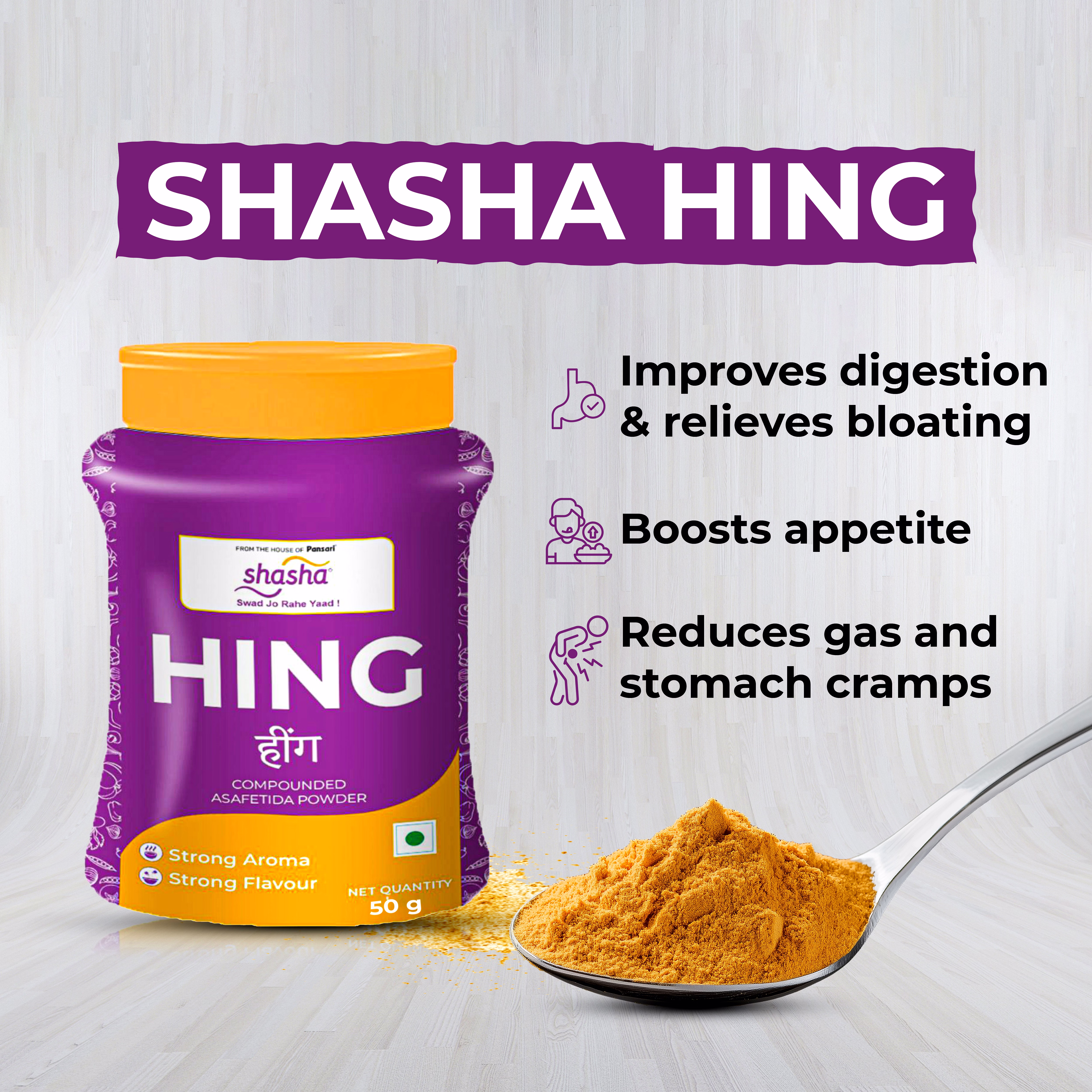Premium Asafoetida Spice: Shasha Hing Powder is made from quality asafoetida to provide a strong aroma and authentic taste in cooking.